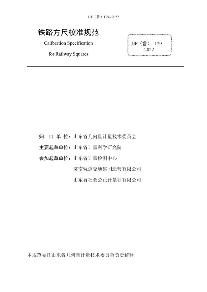 JJF(鲁)129-2022 铁路方尺校准规范