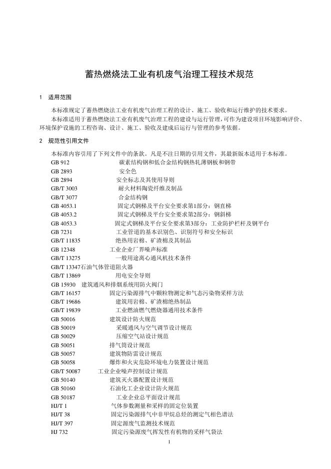 HJ 1093-2020 蓄热燃烧法工业有机废气治理工程技术规范