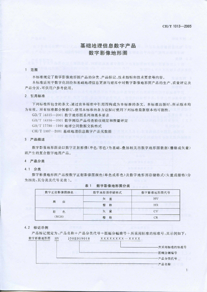 CH/T 1013-2005 基础地理信息数字产品 数字影像地形图
