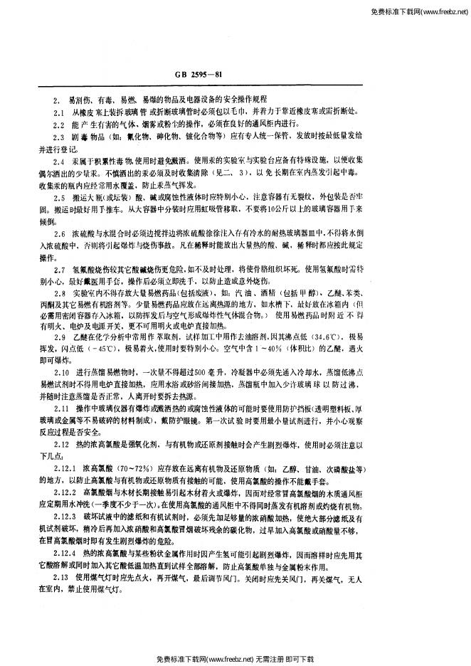 GB 2595-1981 冶金分析化学实验室安全技术标准