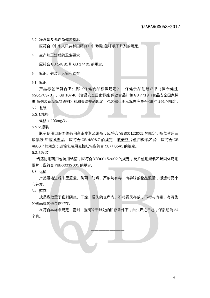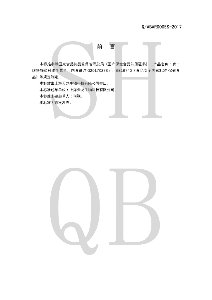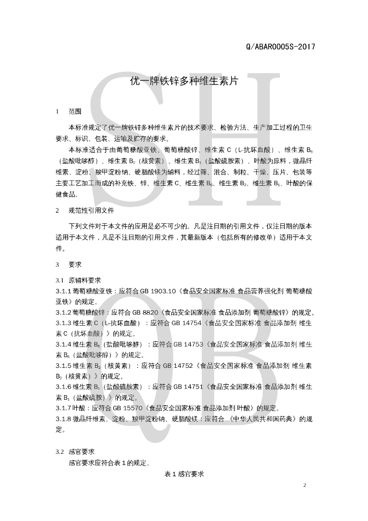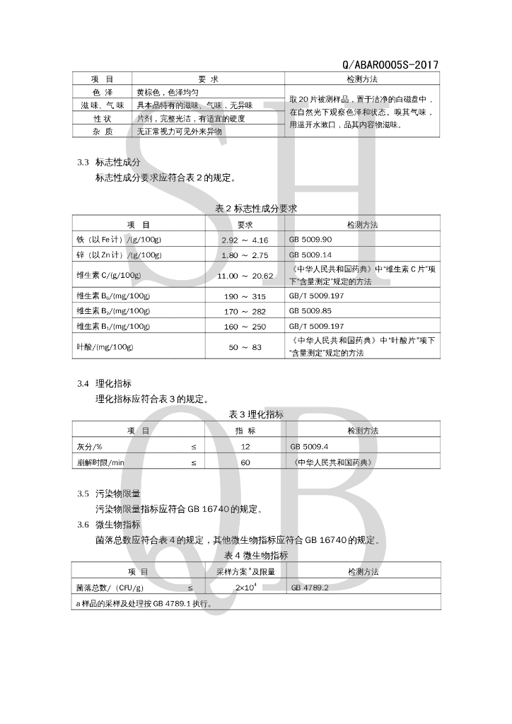 Q/ABAR 0005S-2017 优一牌铁锌多种维生素片