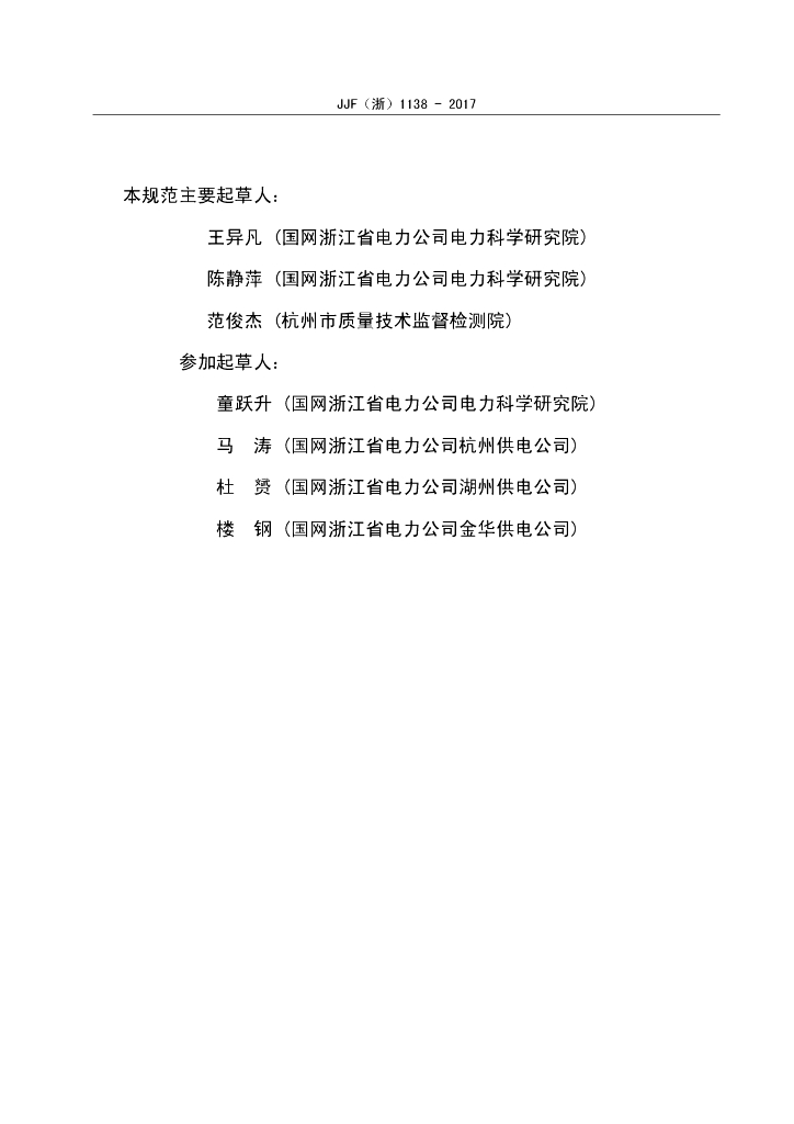 王异凡(国网浙江省电力公司电力科学研究院)、陈静萍(国网浙江省电力公司电力科学研究院)、范俊杰(杭州市质量技术监督检测院)、童跃升(国网浙江省电力公司电力科学研究院)、马涛(国网浙江省电力公司杭州供电公司)、杜赟(国网浙江省电力公司湖州供电公司)、楼钢(国网浙江省电力公司金华供电公司)