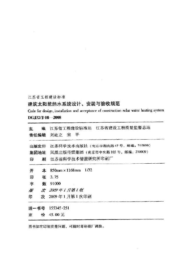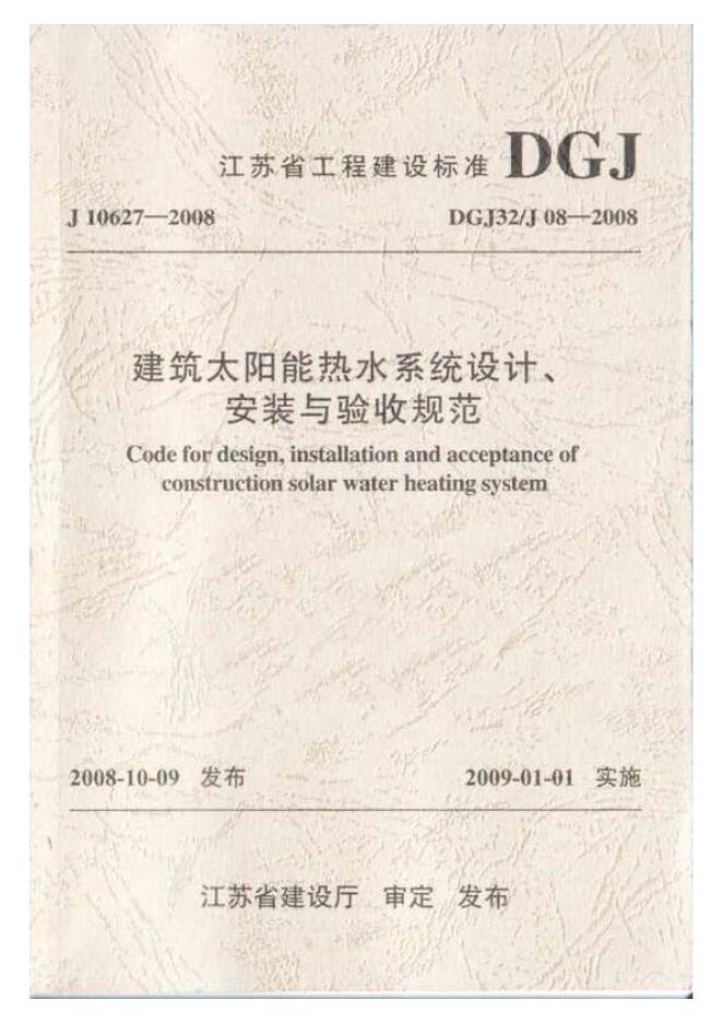 DGJ32/J 08-2008 建筑太阳能热水系统设计、安装与验收规范