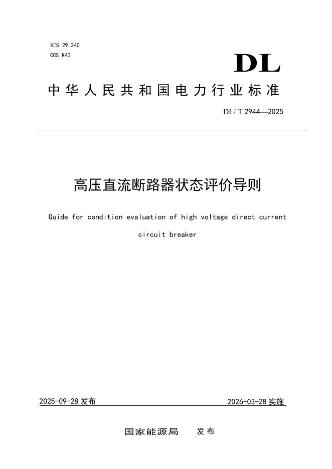 DL/T 2944-2025 高压直流断路器状态评价导则