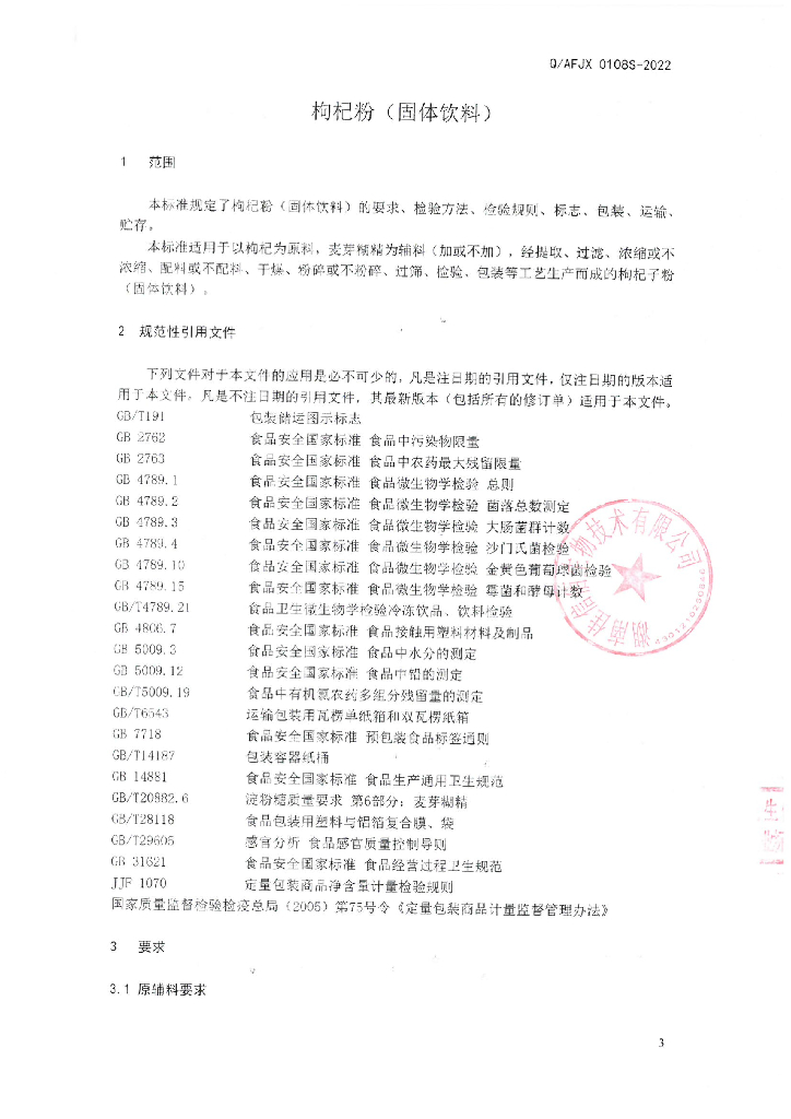 Q/AFJX 0108S-2022 枸杞子粉(固体饮料)