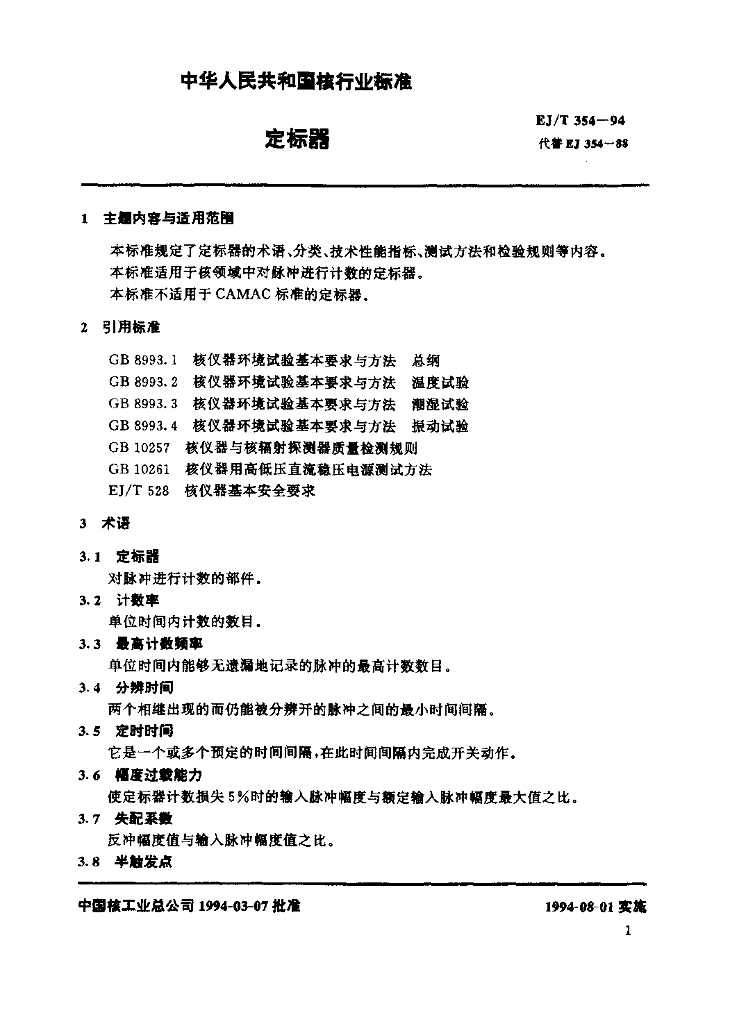 EJ/T 354-1994 定标器