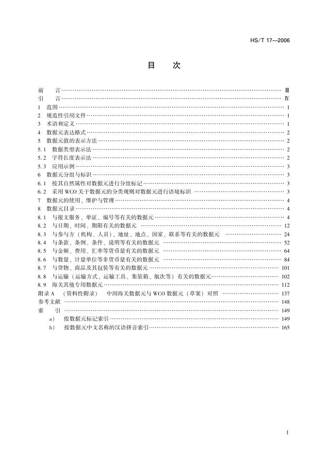 HS/T 17-2006 海关业务基础数据元目录