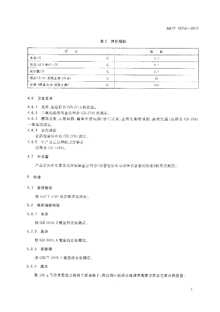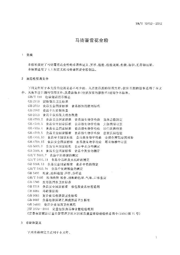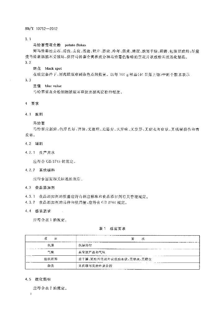 SB/T 10752-2012 马铃薯雪花全粉