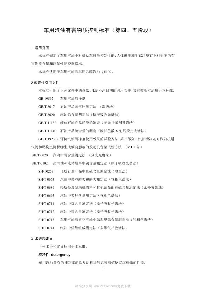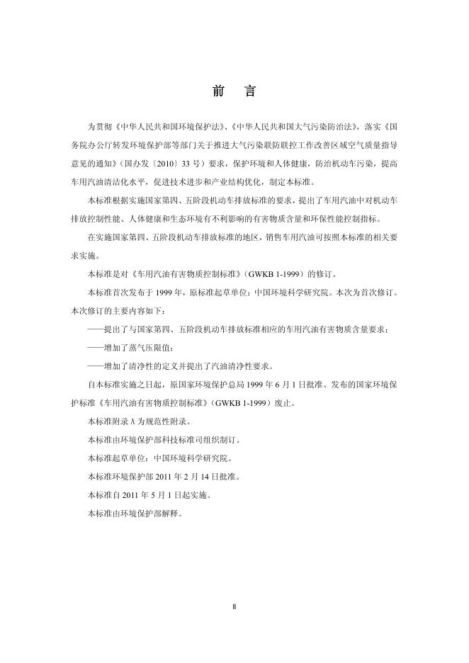 GWKB 1.1-2011 车用汽油有害物质控制标准(第四、五阶段)