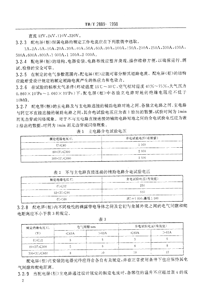 TB/T 2889-1998 电气化铁道低压交流配电屏(柜)技术条件