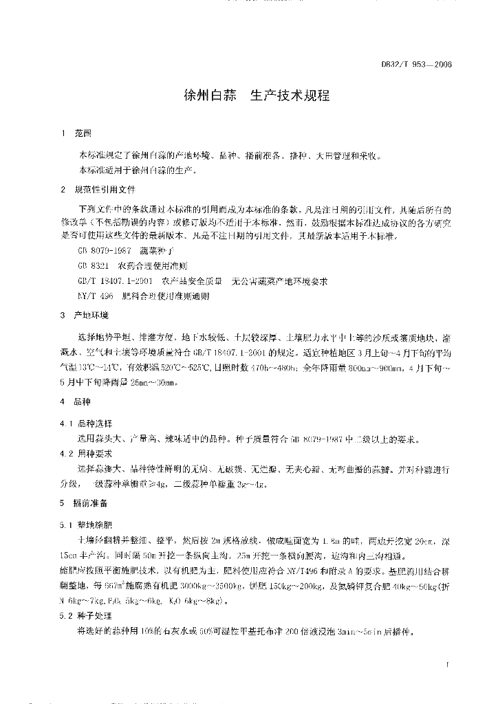 DB32/T 953-2006 徐州白蒜 生产技术规程