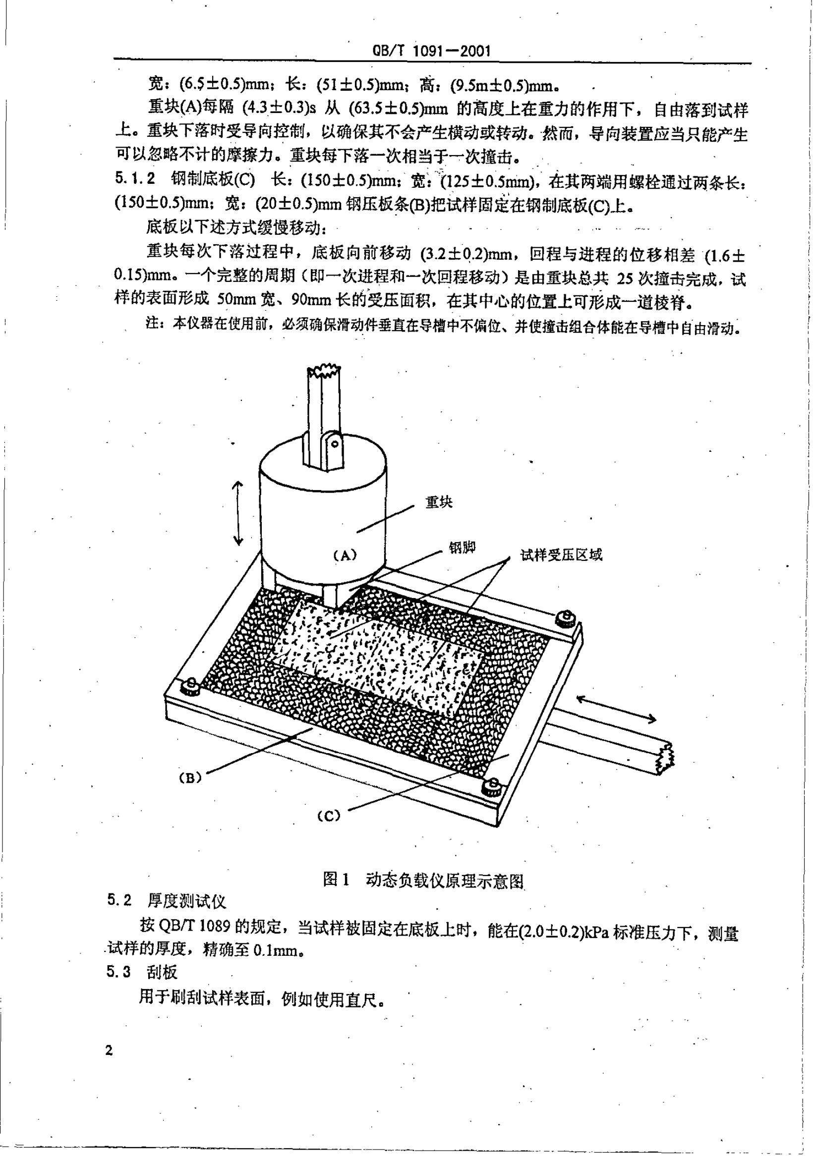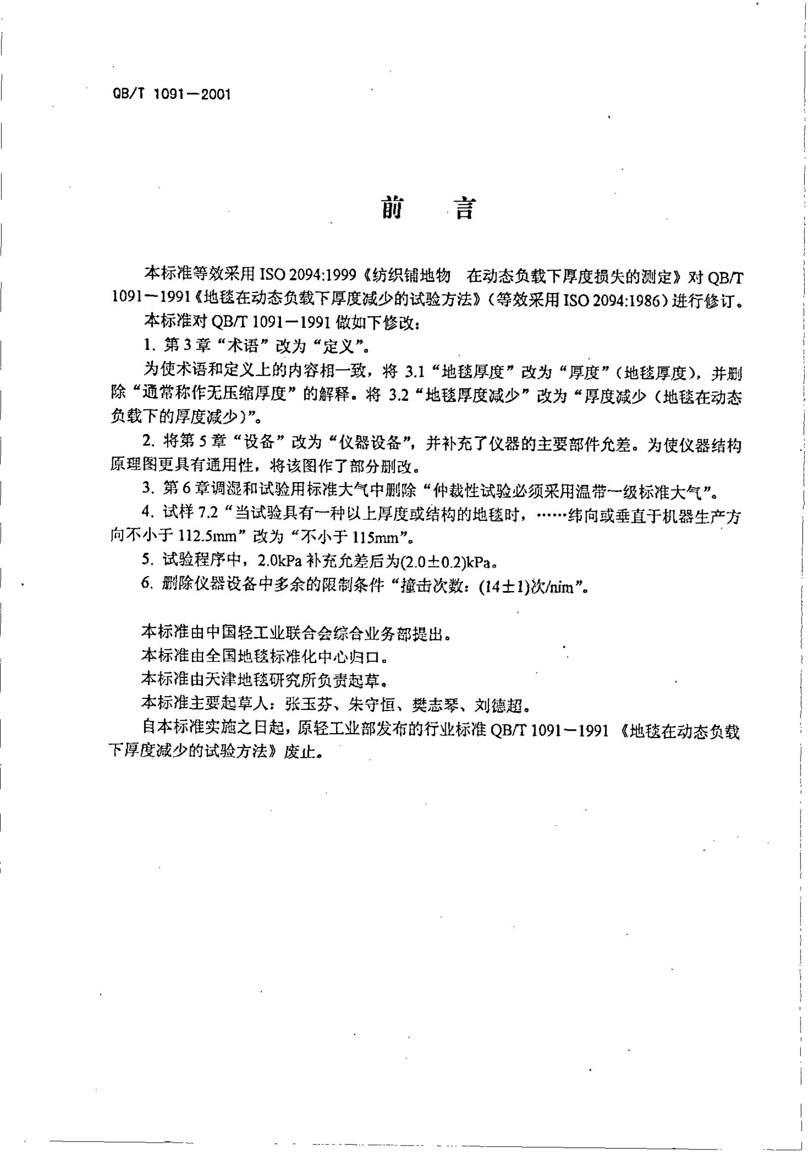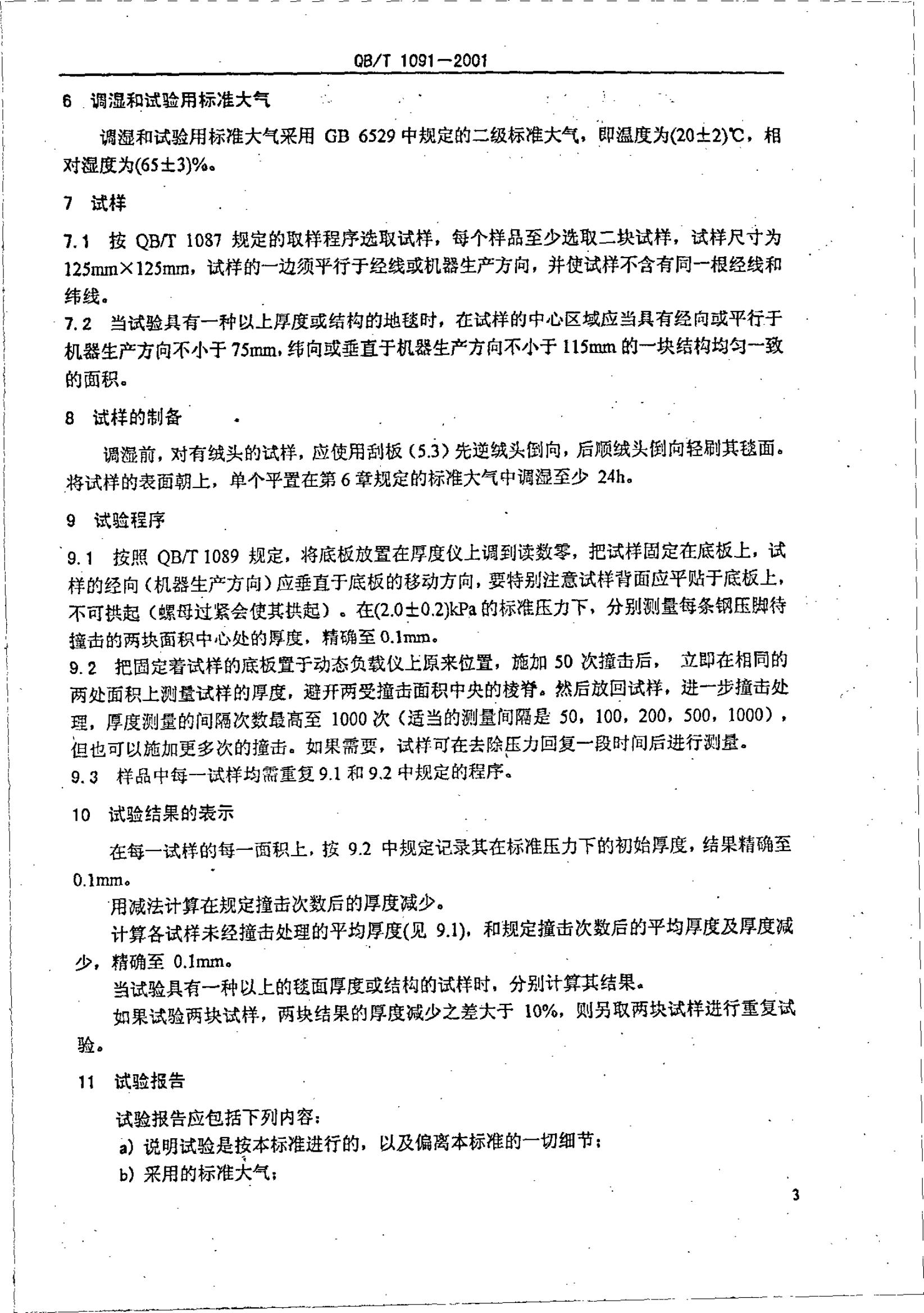 QB 1091-1991 地毯在动态负载下厚度减少的试验方法