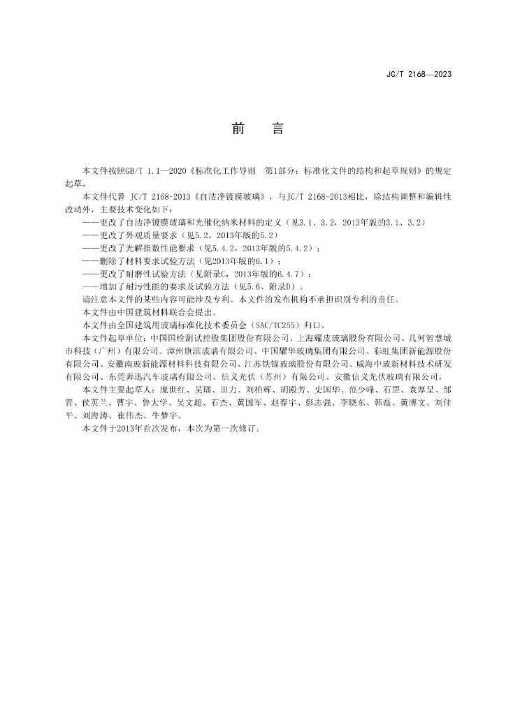 - 代替标准:JC/T 2168-2013