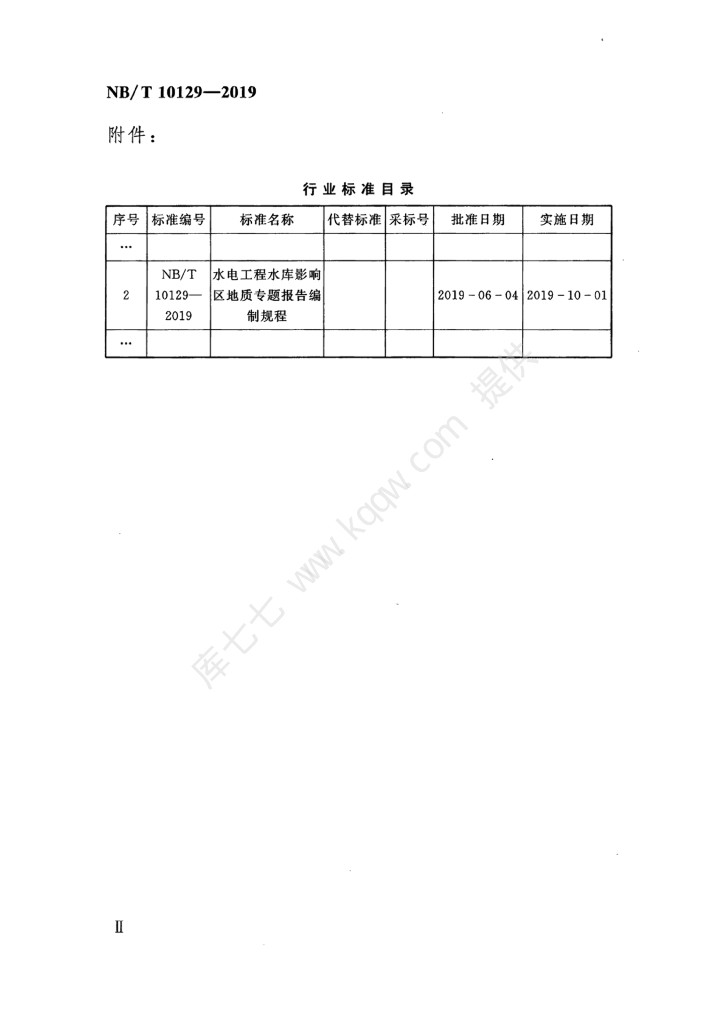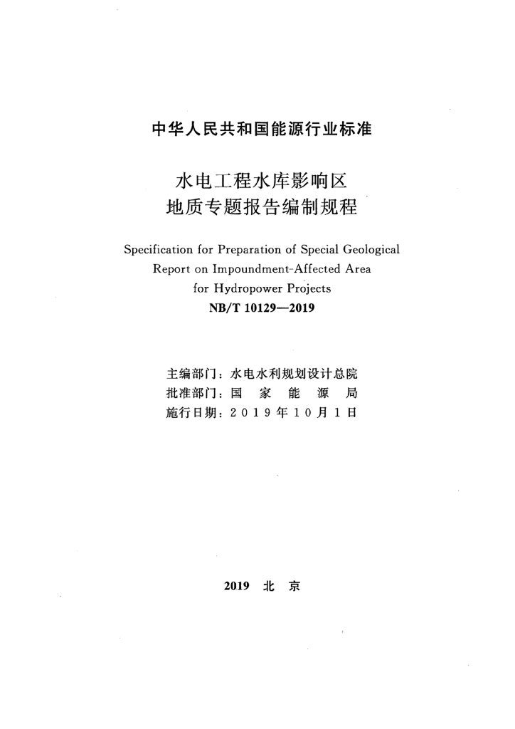 NB/T 10129-2019 水电工程水库影响区地质专题报告编制规程