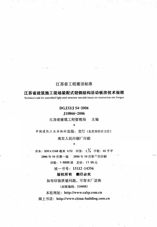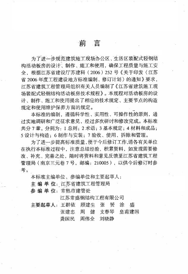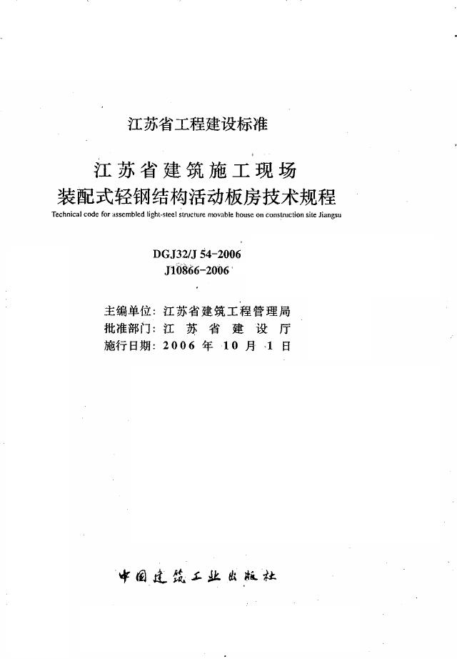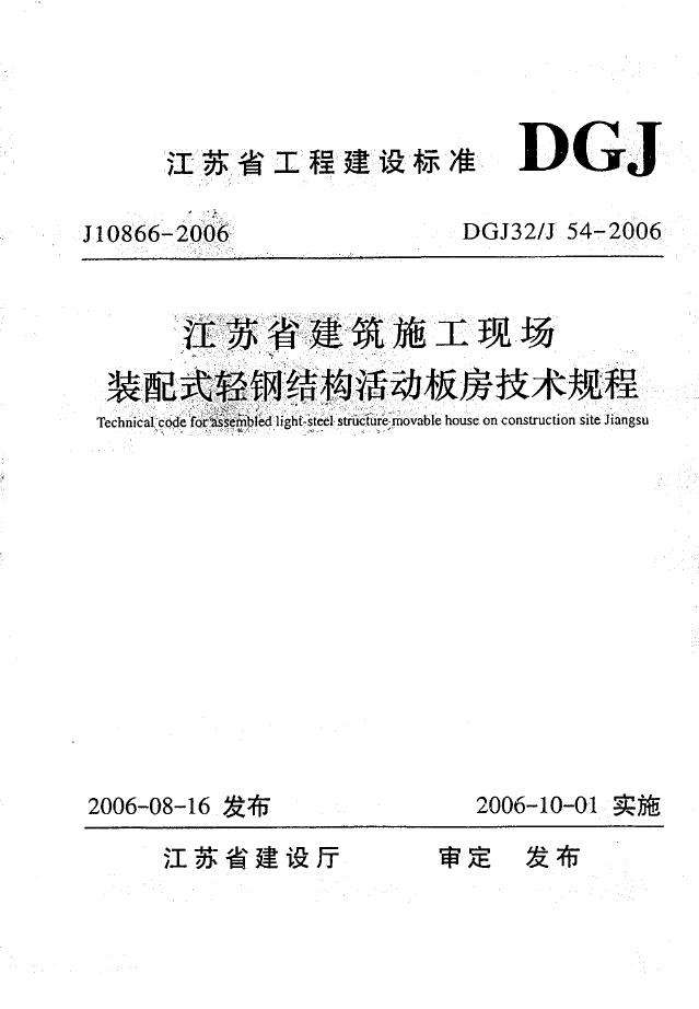 DGJ32/J 54-2006 江苏省建筑施工现场装配式轻钢结构活动板房技术规程