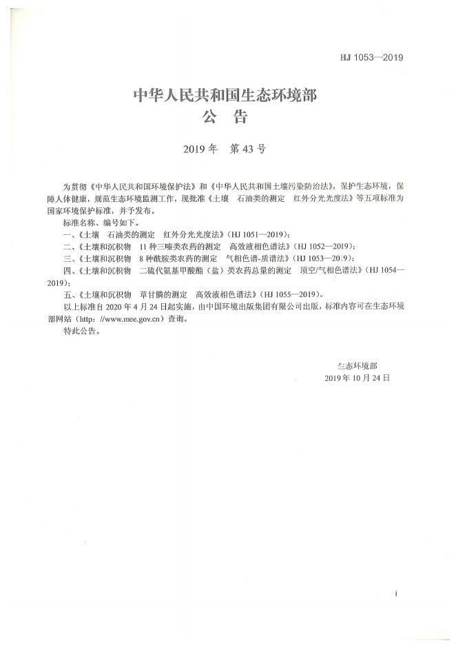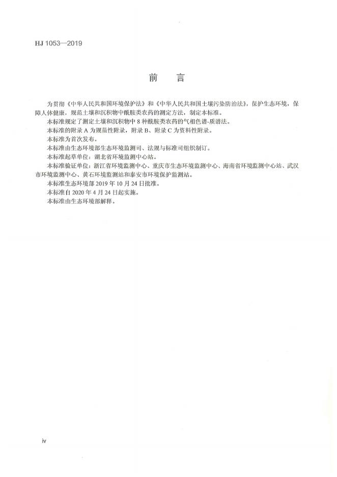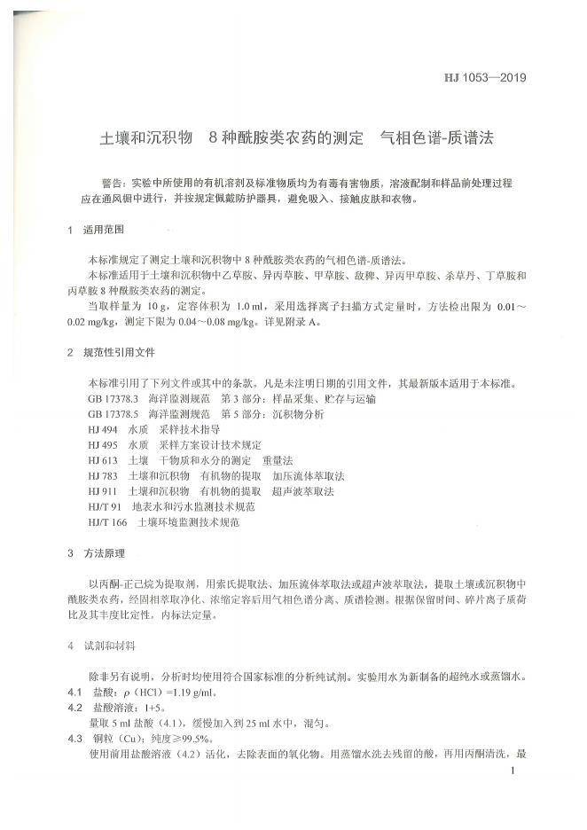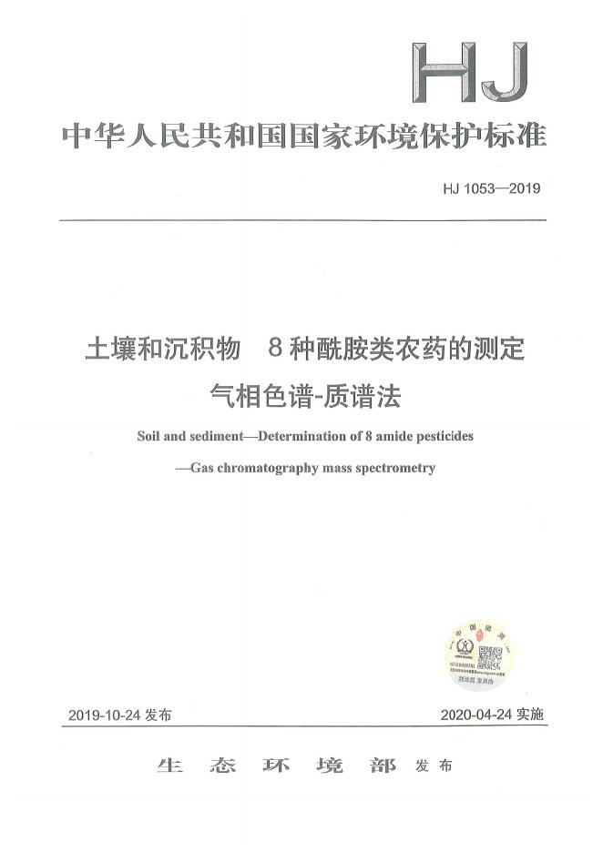 HJ 1053-2019 土壤和沉积物 8种酰胺类农药的测定 气相色谱-质谱法