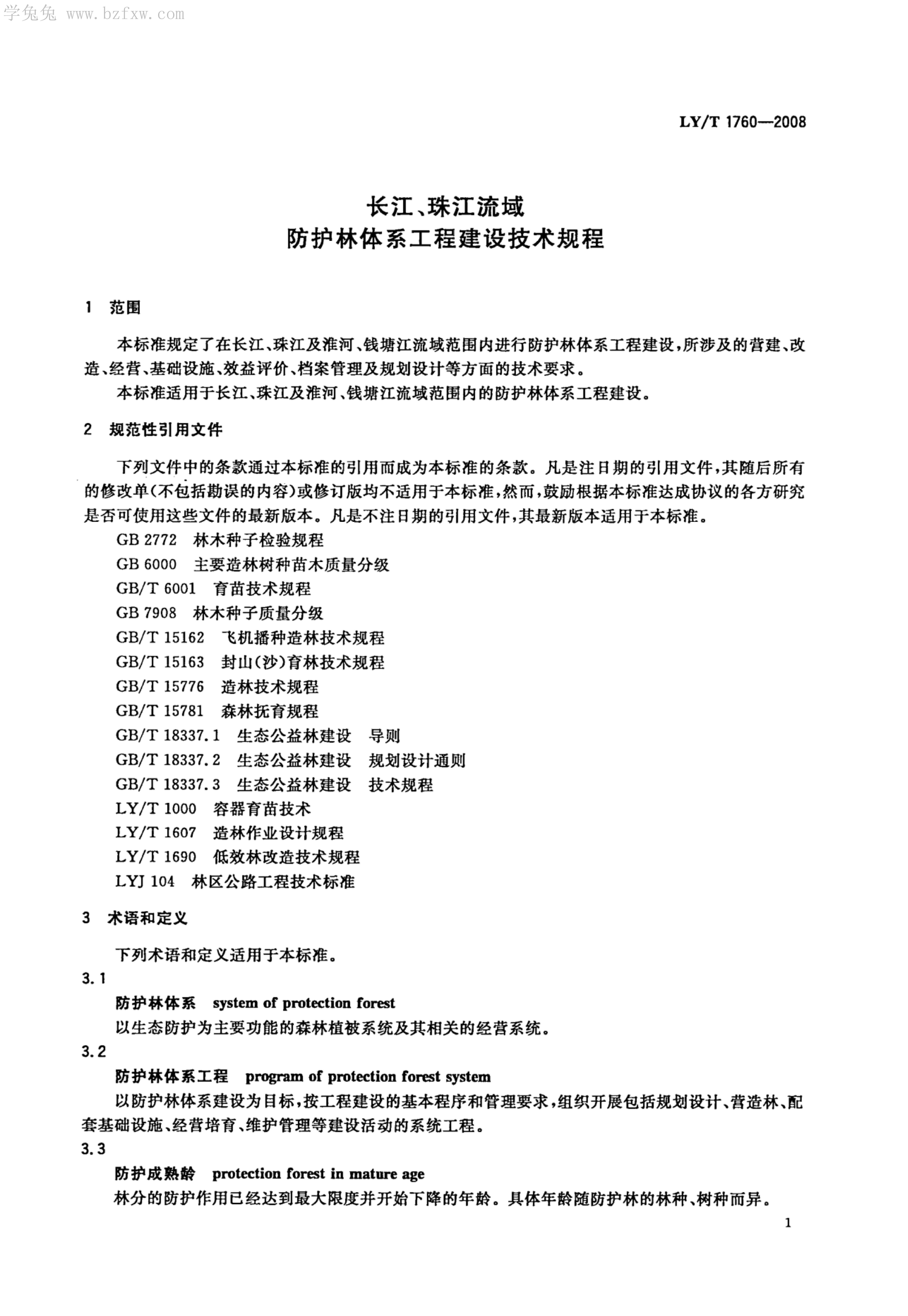 LY/T 1760-2008 长江、珠江流域防护林体系工程建设技术规程