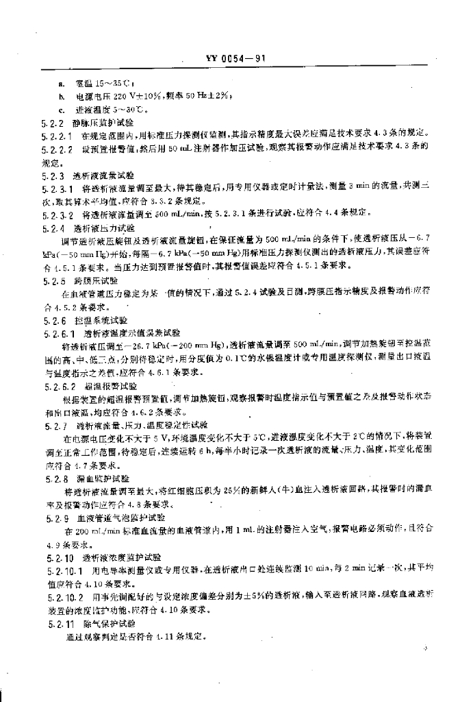 YY 0054-1991 血液透析装置