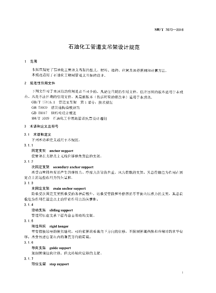 SH/T 3073-2016 石油化工管道支吊架设计规范