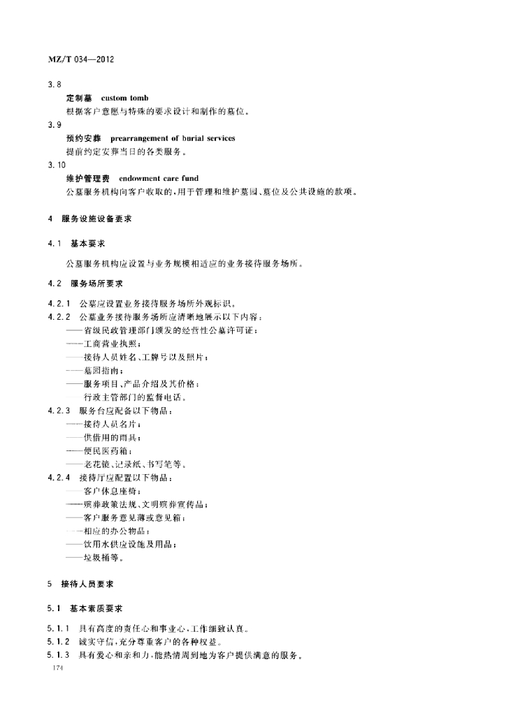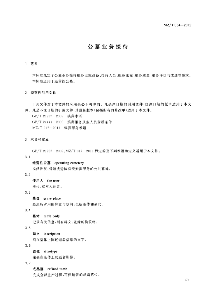 MZ/T 034-2012 公墓业务接待