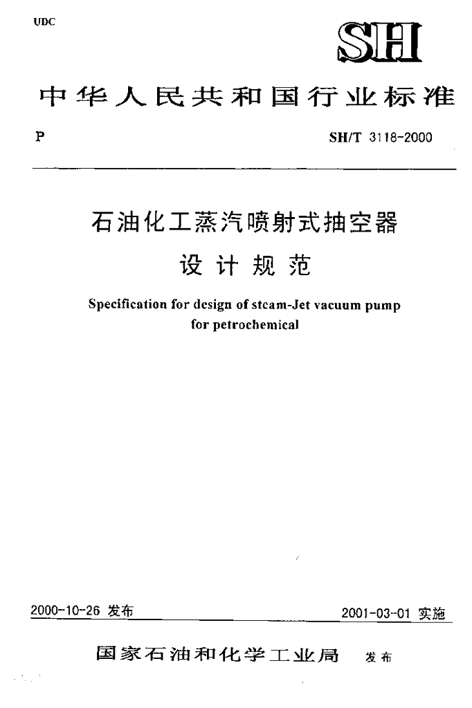 SH/T 3118-2000 石油化工蒸汽喷射式抽空器设计规范