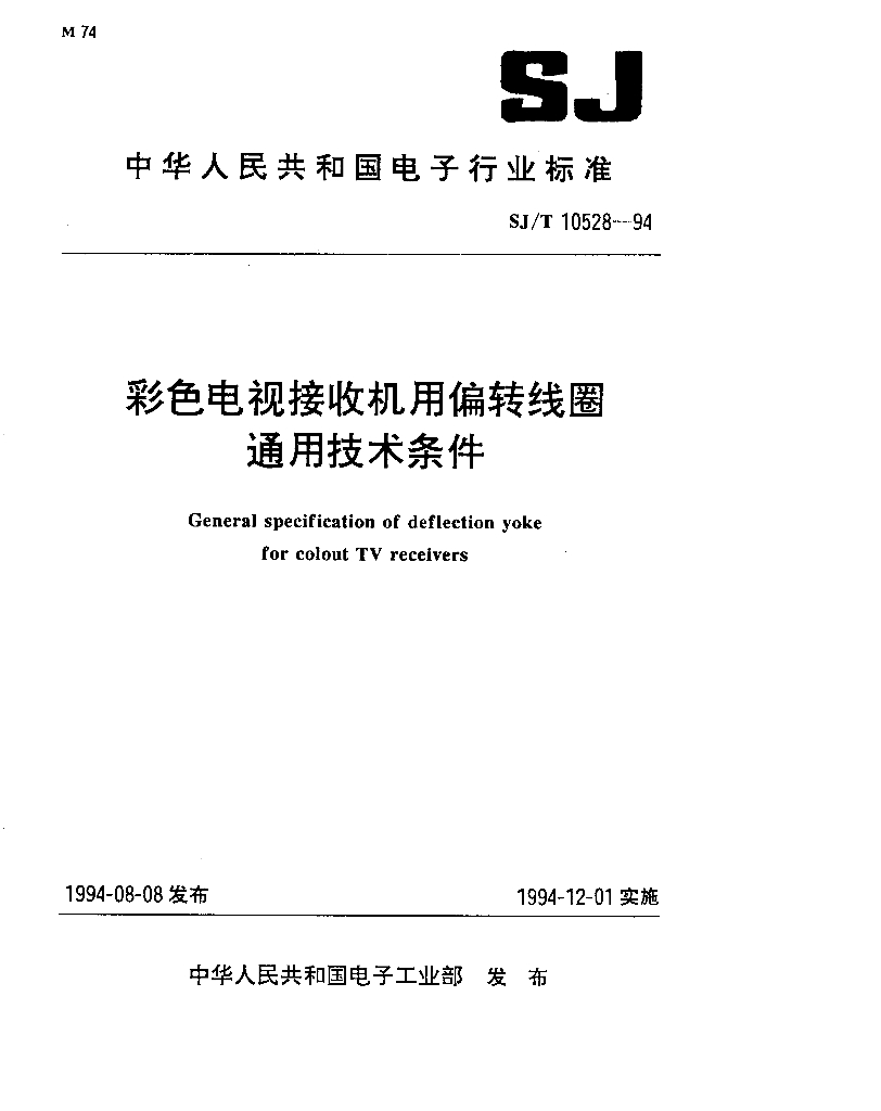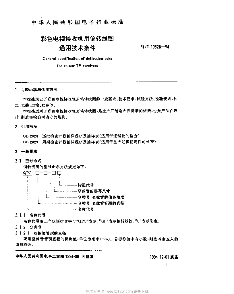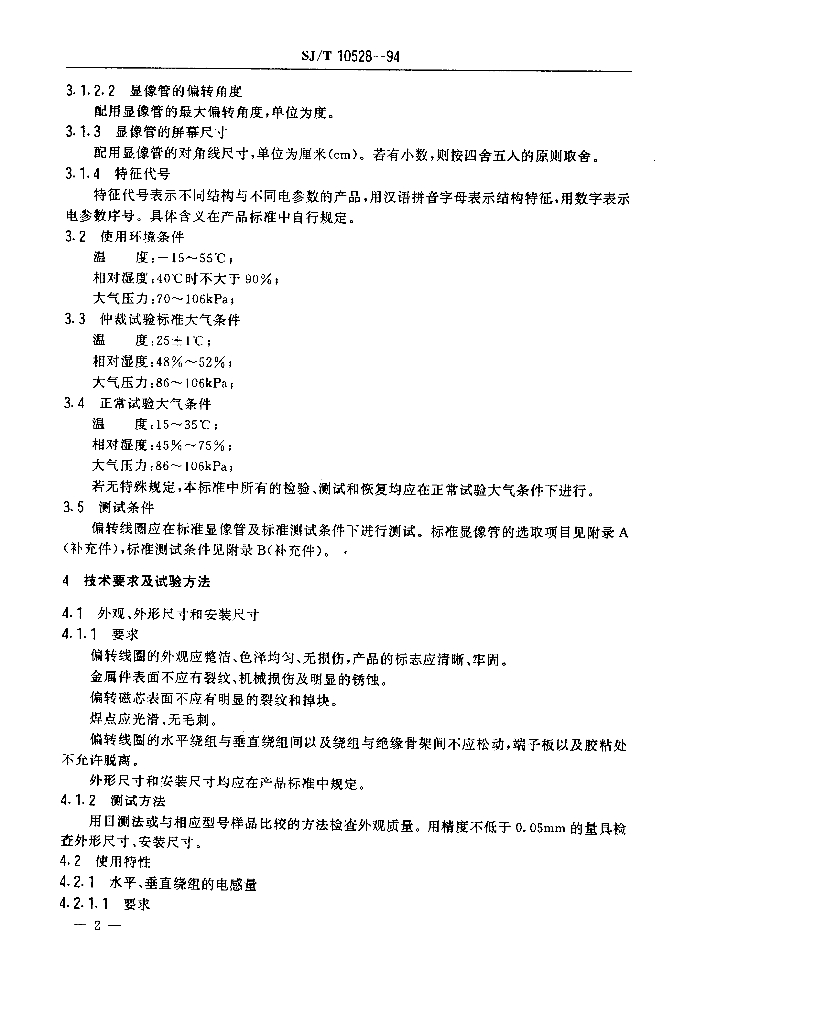 SJ/T 10528-1994 彩色电视接收机用偏转线圈通用技术条件