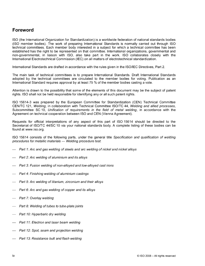 ISO 15614-3-2008 金属材料的焊接程序规范和合格鉴定.焊接程序试验.第3部分非合金和低合金铸铁的熔焊