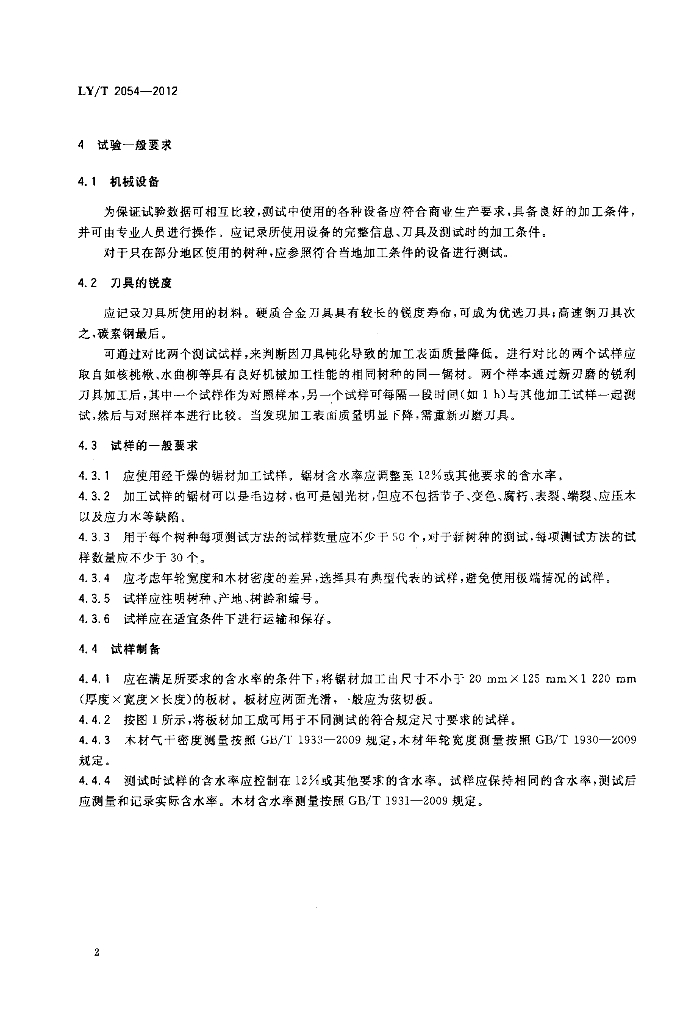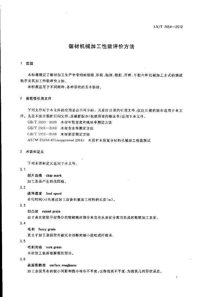 LY/T 2054-2012 锯材机械加工性能评价方法