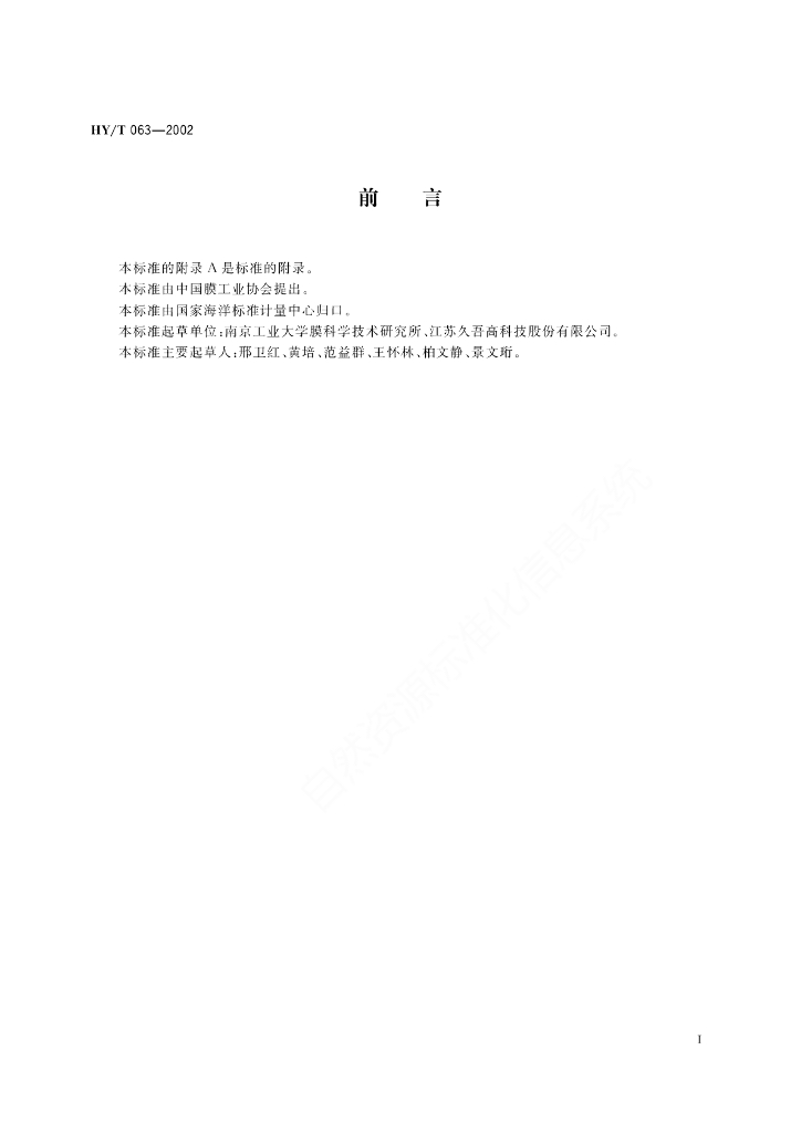 HY/T 063-2002 管式陶瓷微孔滤膜元件