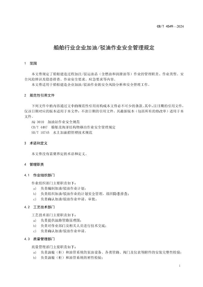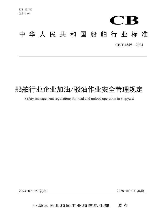 CB/T 4549-2024 船舶行业企业加油/驳油作业安全管理规定