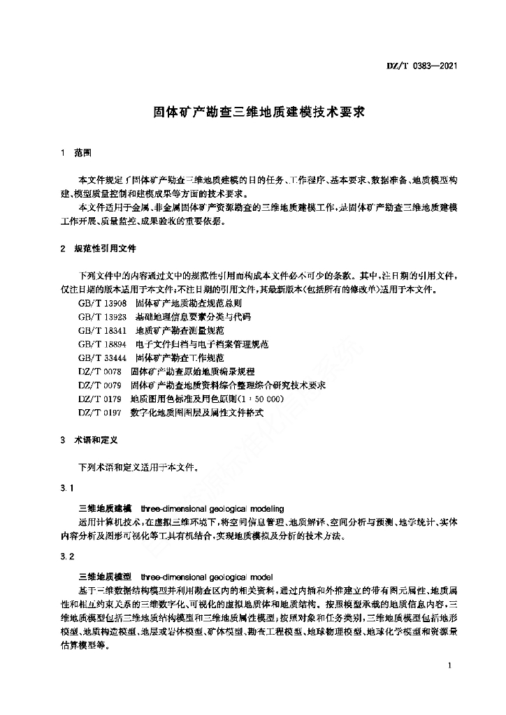 DZ/T 0383-2021 固体矿产勘查三维地质建模技术要求