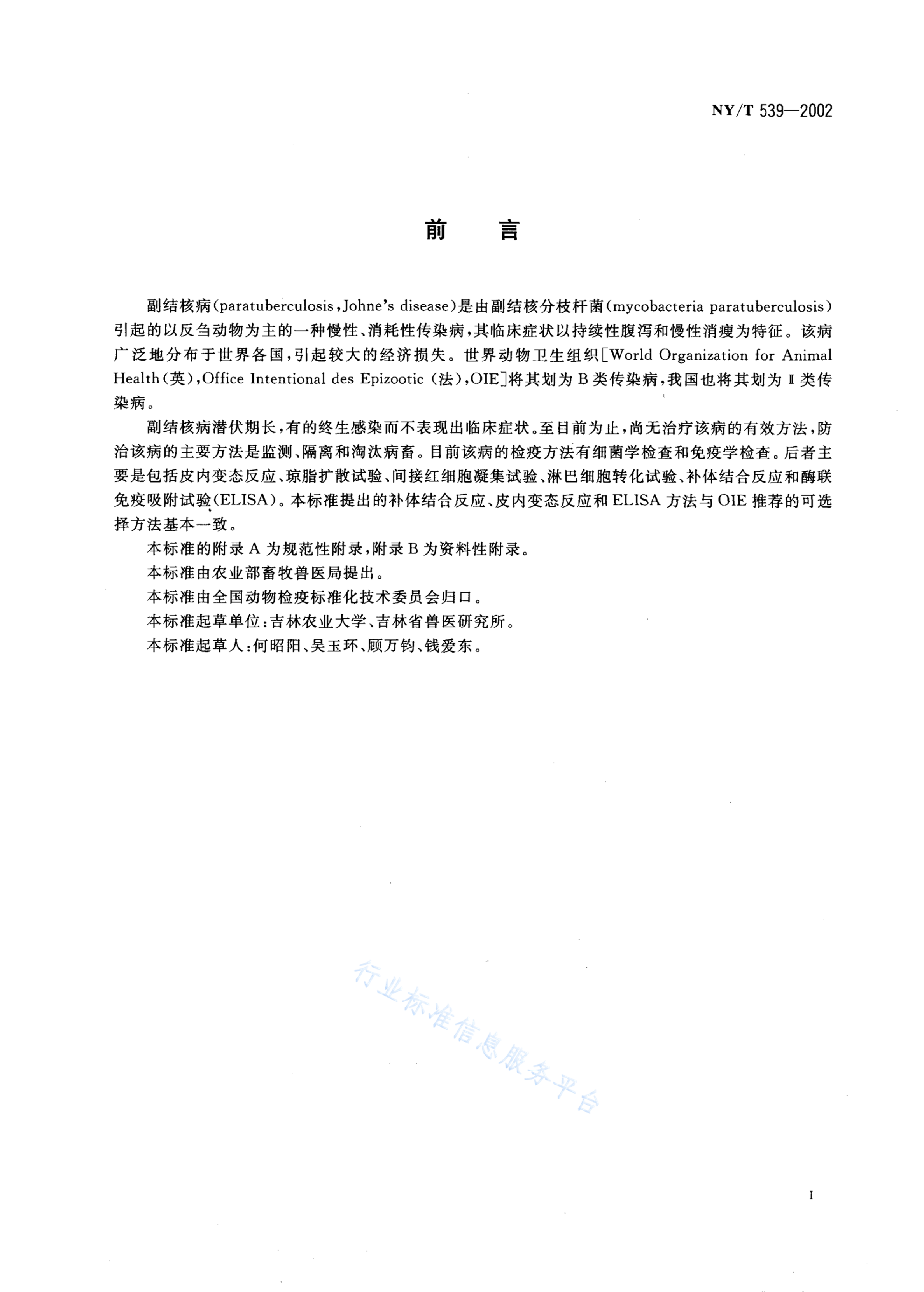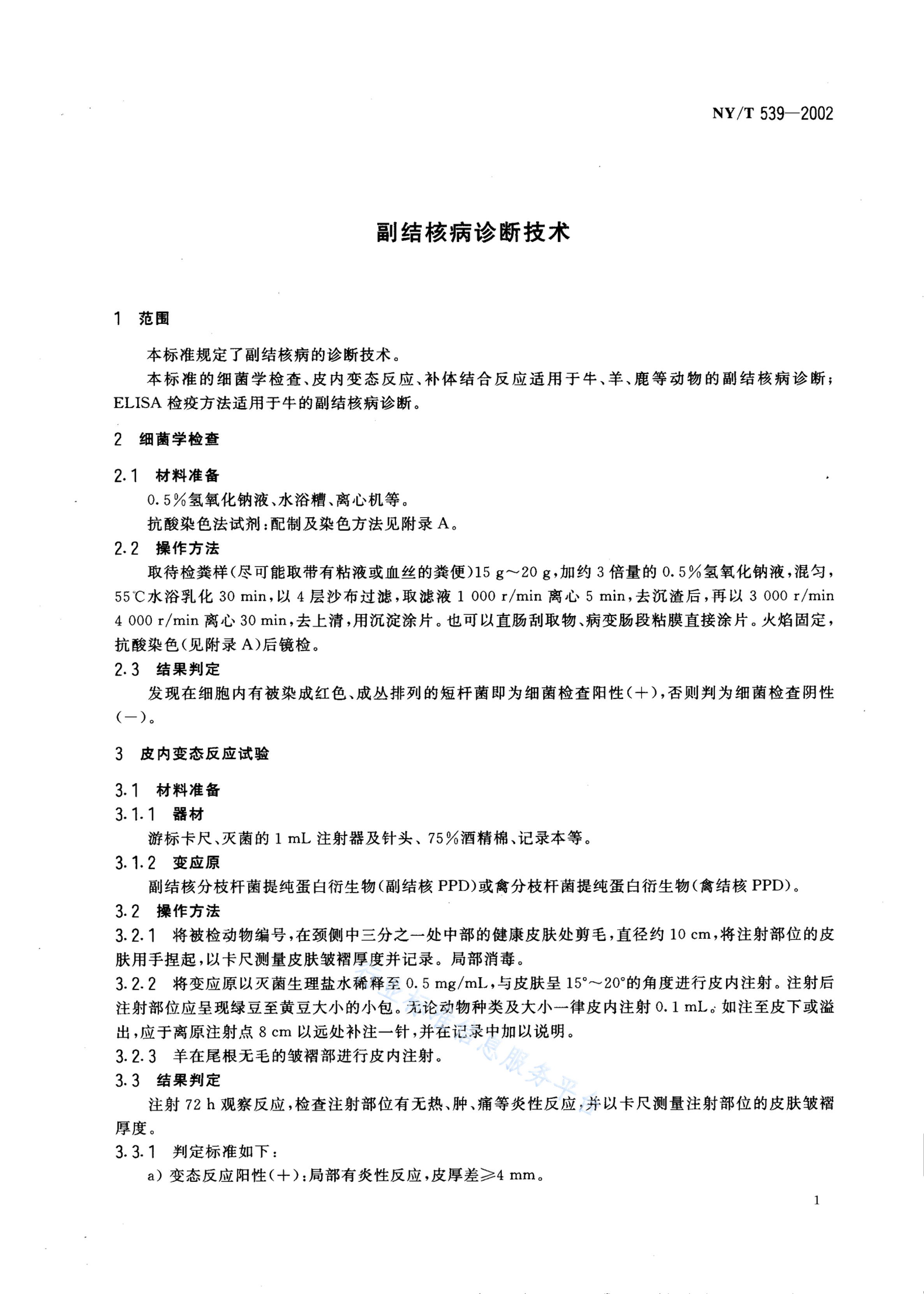 NY/T 539-2002 副结核病诊断技术
