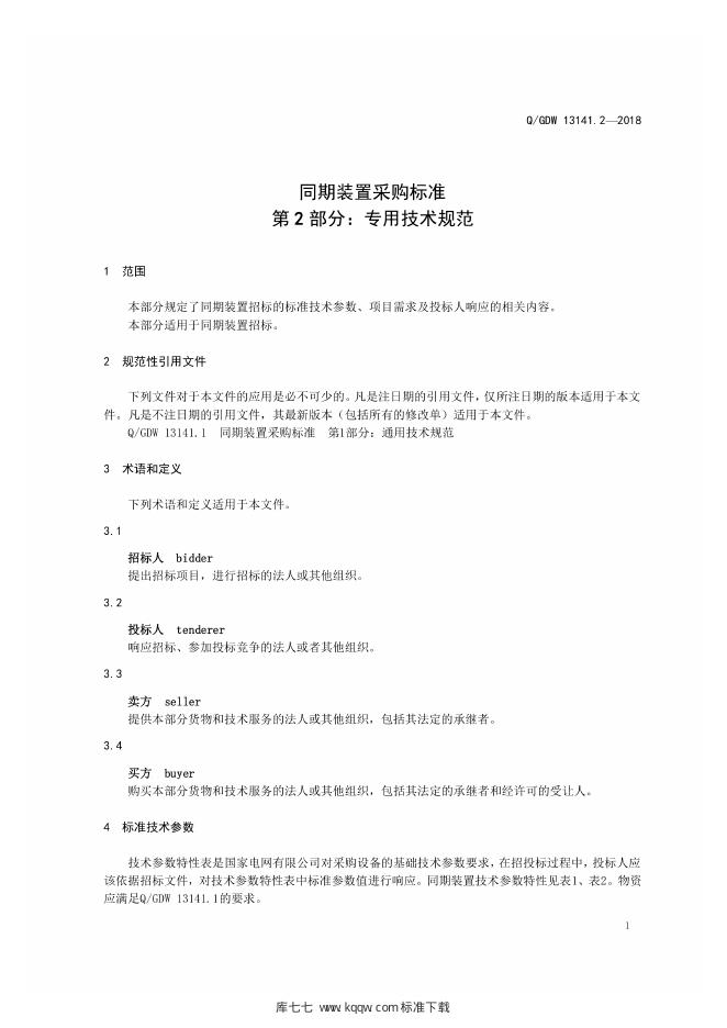 Q/GDW 13141.2-2018 同期装置采购标准 第2部分:专用技术规范