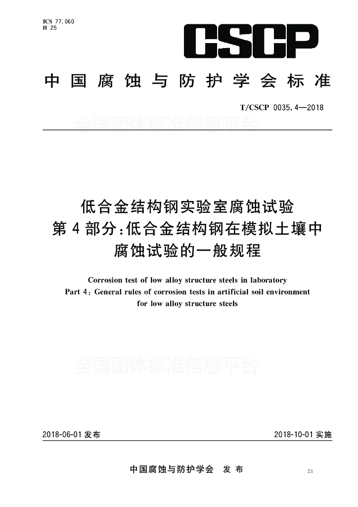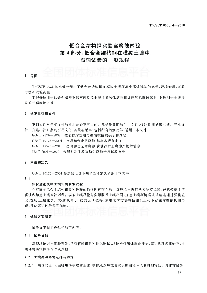 T/CSCP 0035.4-2017 低合金结构钢实验室腐蚀试验 第4部分:低合金结构钢土壤 腐蚀模拟试验的一般规程