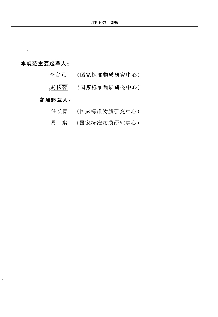 李占元(国家标准物质研究中心)、刘榜智(国家标准物质研究中心)、任长青(国家标准物质研究中心)、易洪(国家标准物质研究中心)