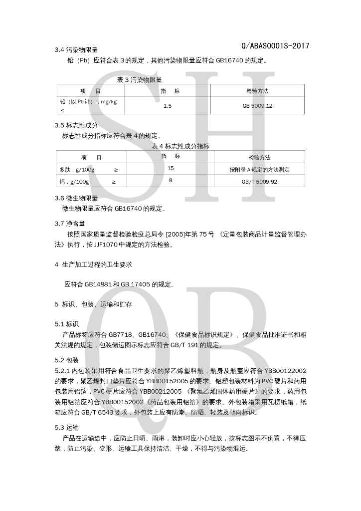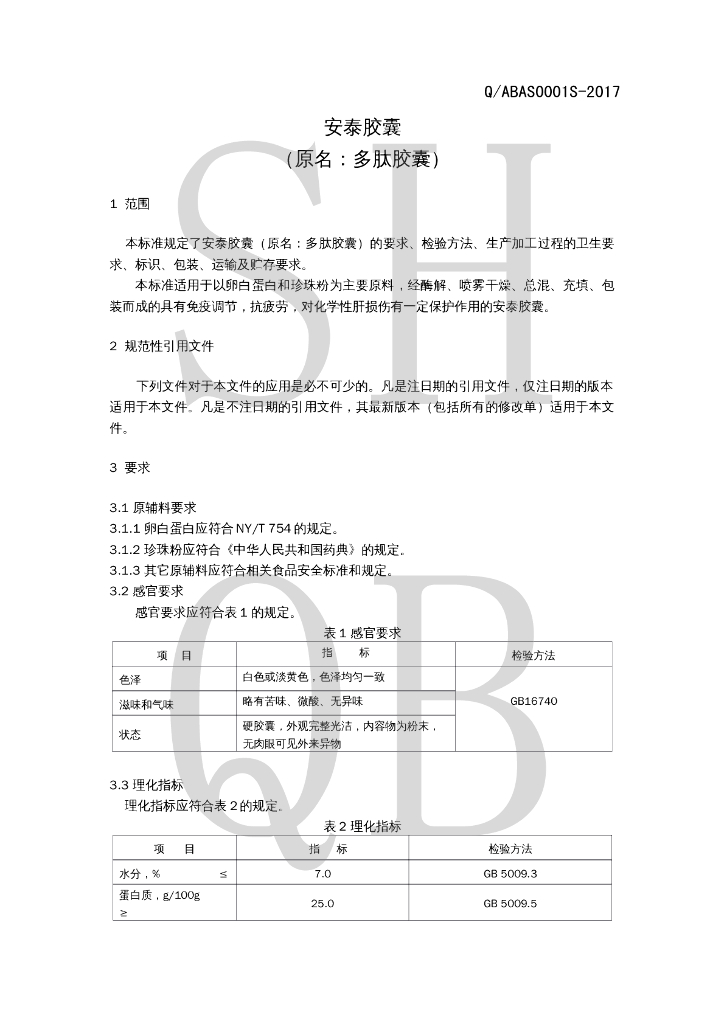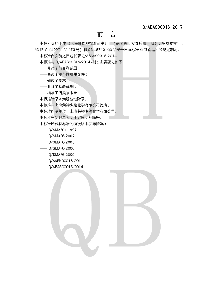 Q/ABAS 0001S-2017 安泰胶囊(原名:多肽胶囊)