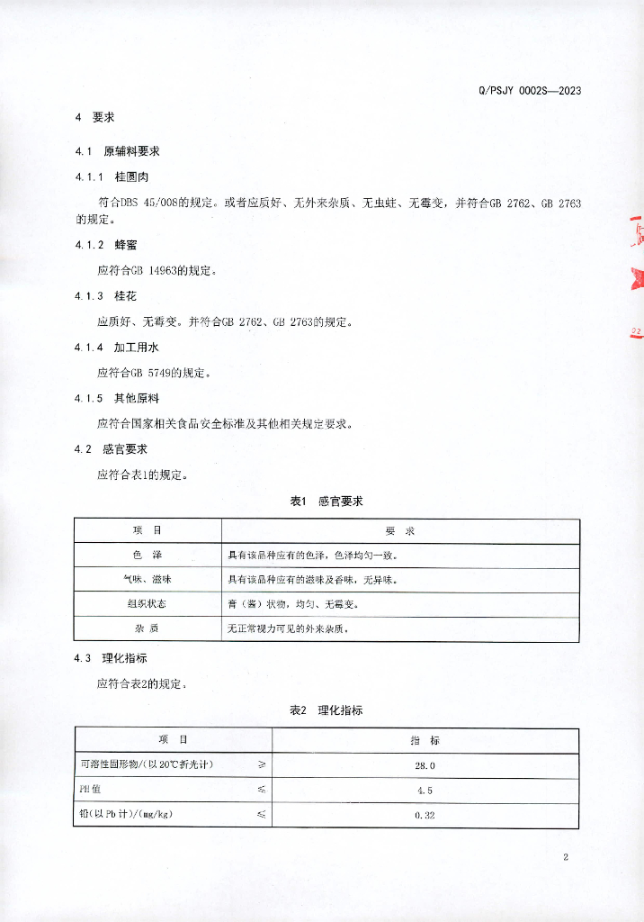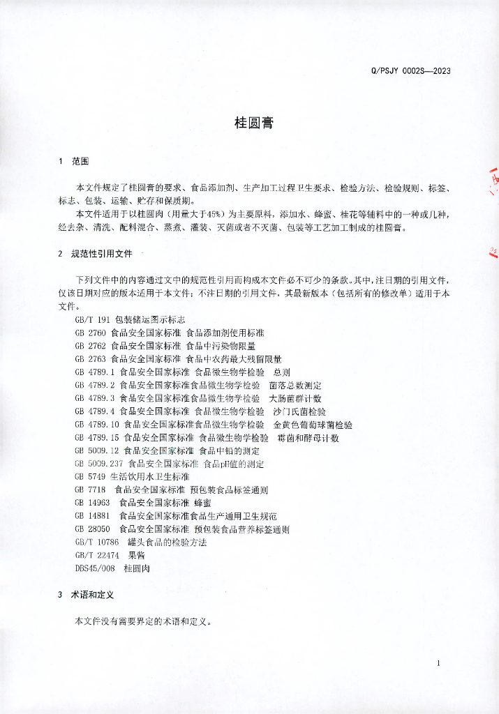 Q/PSJY 0002S-2023 桂圆膏