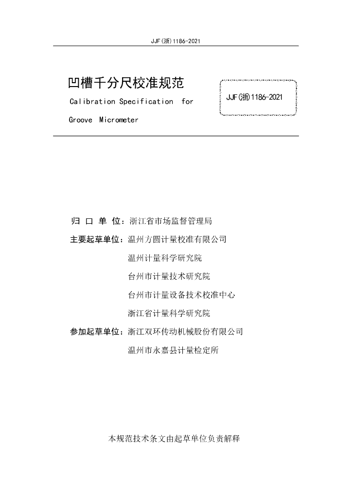 江涛(温州方圆计量校准有限公司)、孙晓霆(温州市计量科学研究院)、王超(台州市计量技术研究院)、邬振华(台州市计量设备技术校准中心)、陆益(浙江省计量科学研究院)、叶美平(浙江双环传动机械股份有限公司)、柯建攀(温州市计量科学研究院)、陈晔(温州市永嘉县计量检定所)