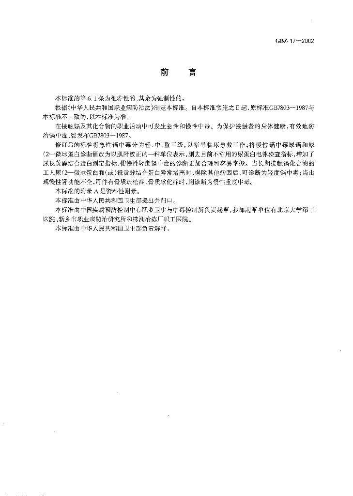 中国疾病预防控制中心职业卫生与中毒控制所、北京大学第三医院、新乡市职业病防治研究所、株洲冶炼厂职工医院