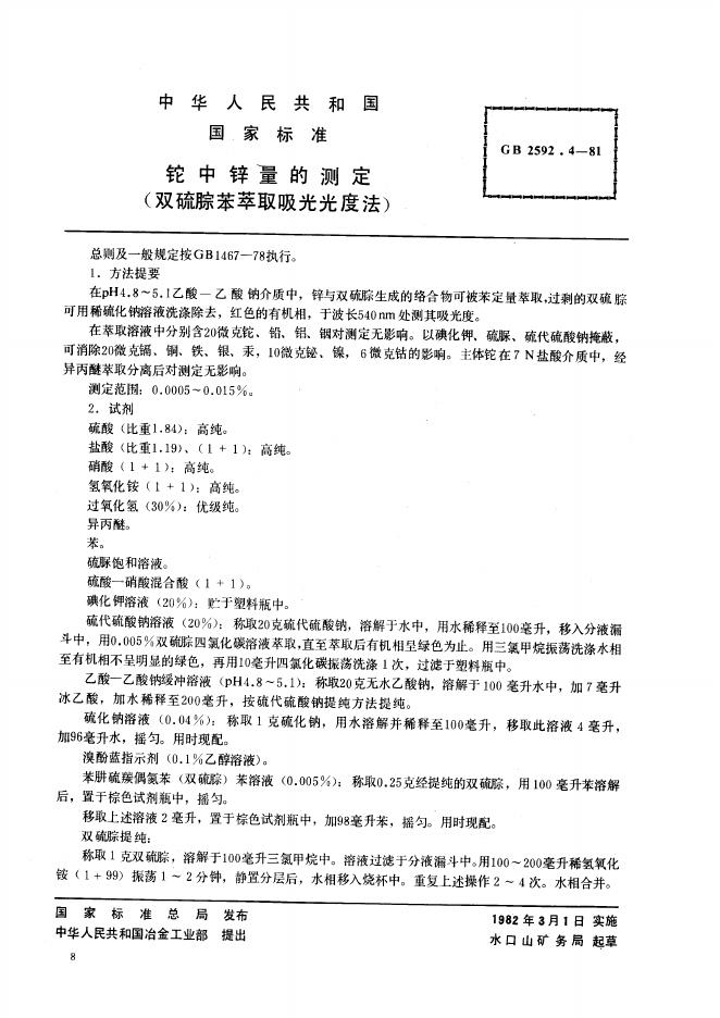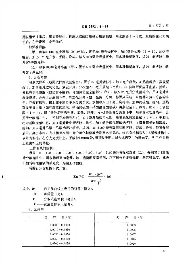 GB/T 2592.4-1981 铊中锌量的测定 双硫腙苯萃取吸光光度法