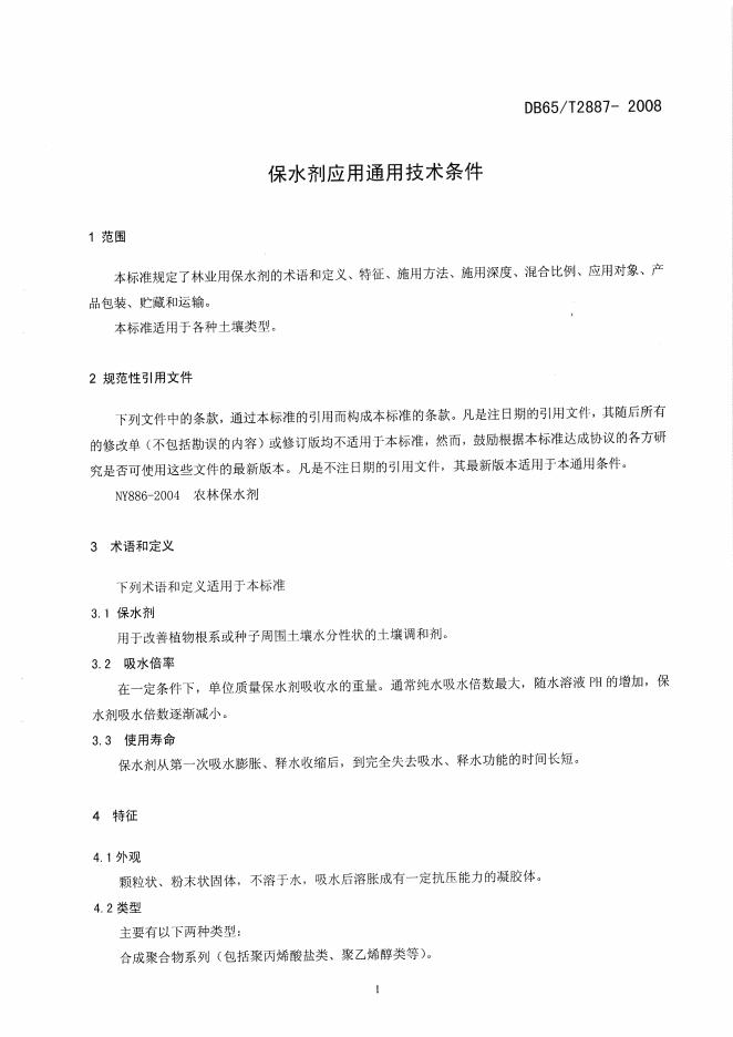 DB65/T 2887-2008 林业用保水剂应用通用技术条件