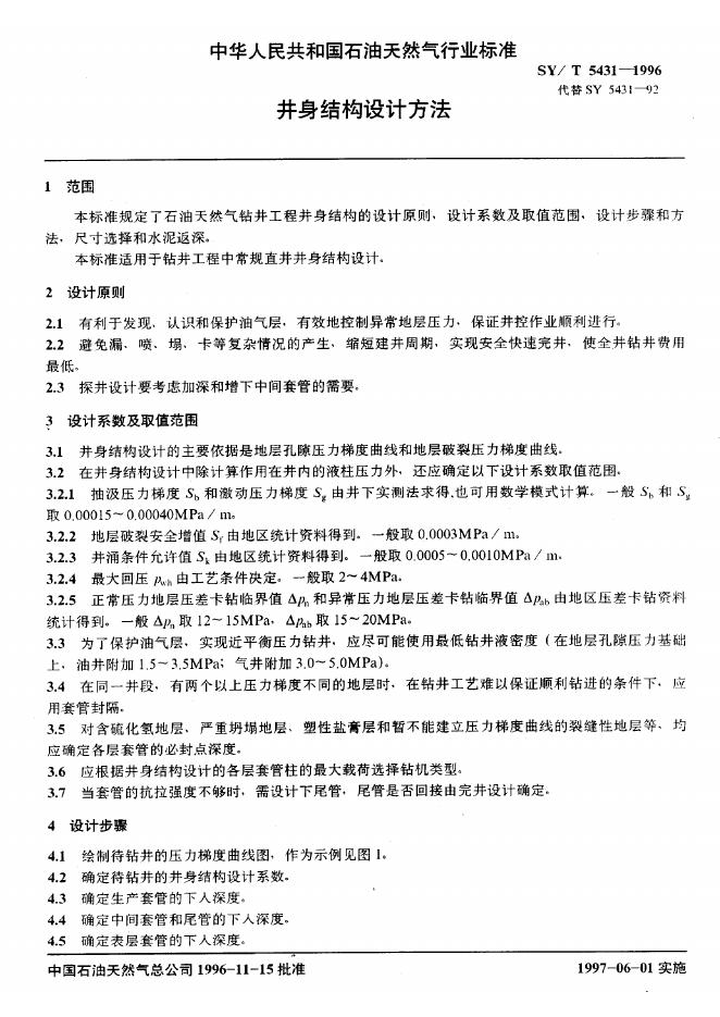 SY 5431-1992 井身结构设计方法