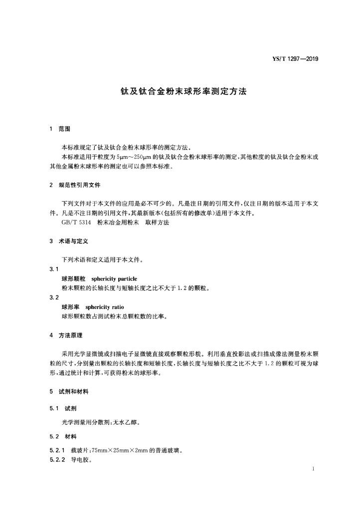 YS/T 1297-2019 钛及钛合金粉末球形率测定方法