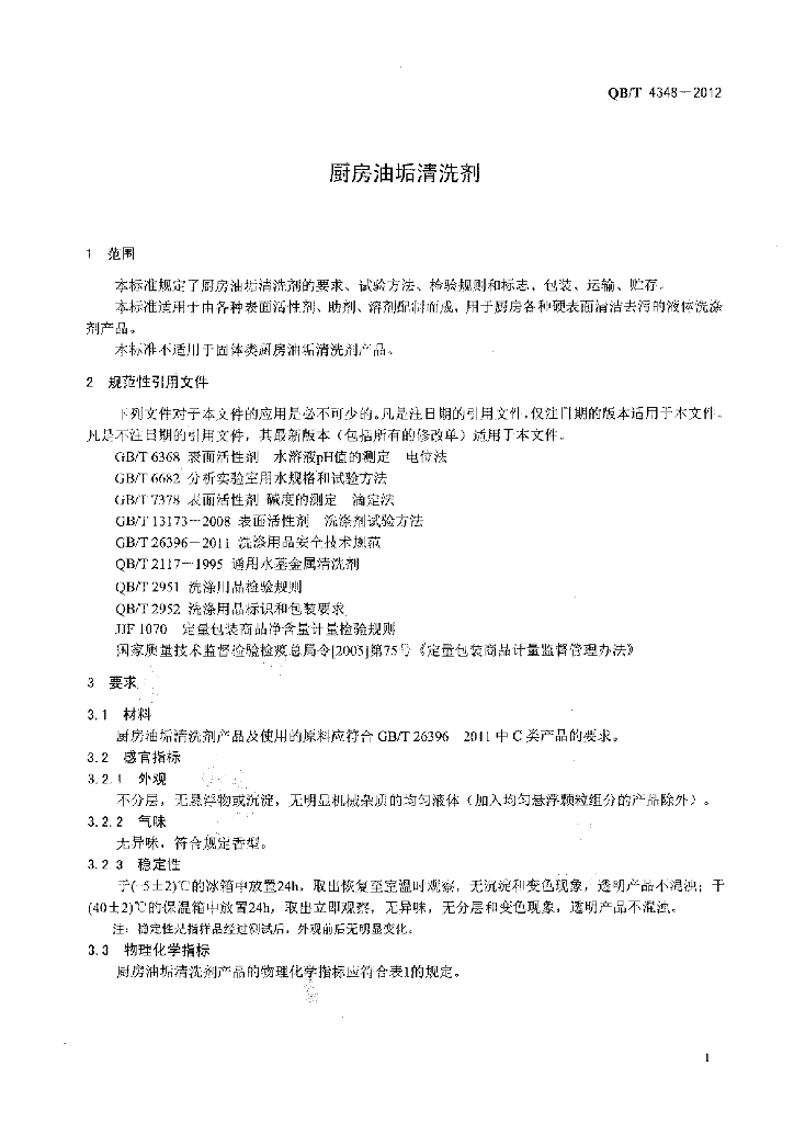 QB/T 4348-2012 厨房油垢清洗剂