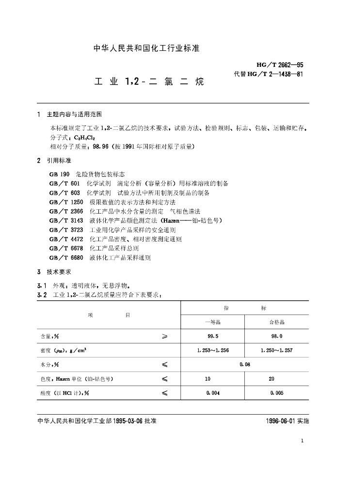 HG/T 2662-1995 工业1,2-二氯乙烷