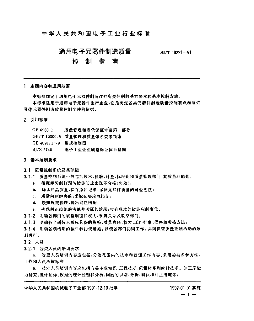 SJ/T 10221-1991 通用电子元器件制造质量控制指南