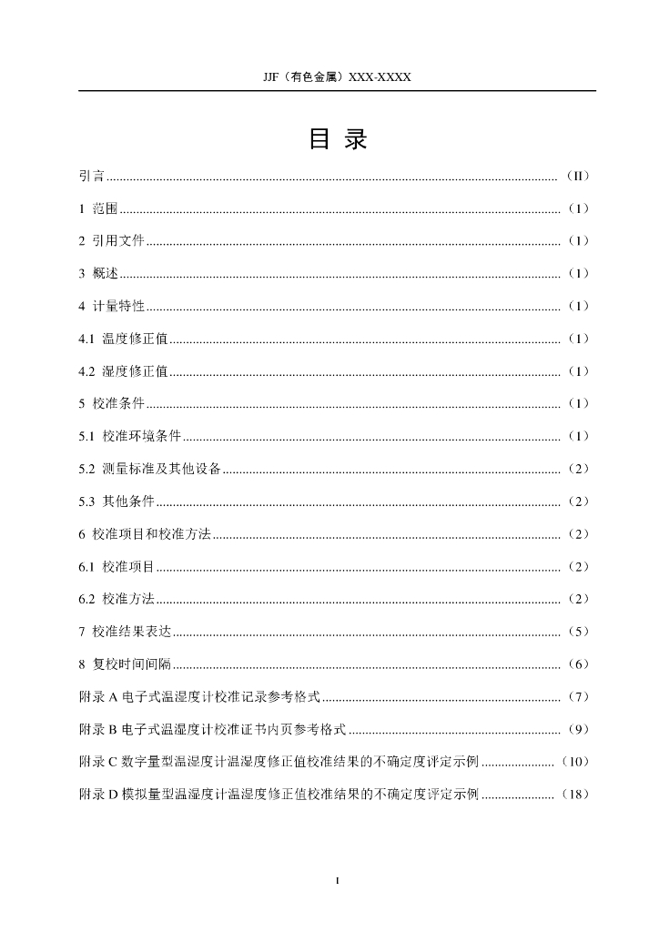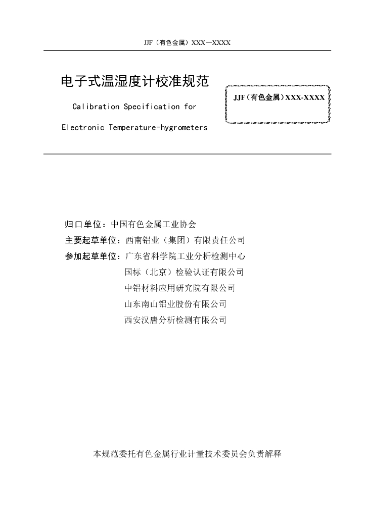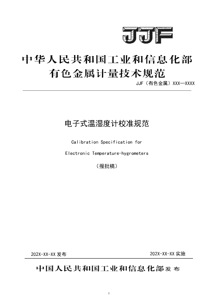 JJF(有色金属)0020-2023 电子式温湿度计校准规范(报批稿)