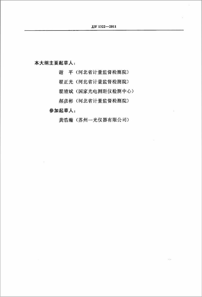 谢平(河北省计量监督检测院)、翟正光(河北省计量监督检测院)、翟清斌(国家光电测距仪检测中心)、郝彦彬(河北省计量监督检测院)、龚浩瀚(苏州一光仪器有限公司)