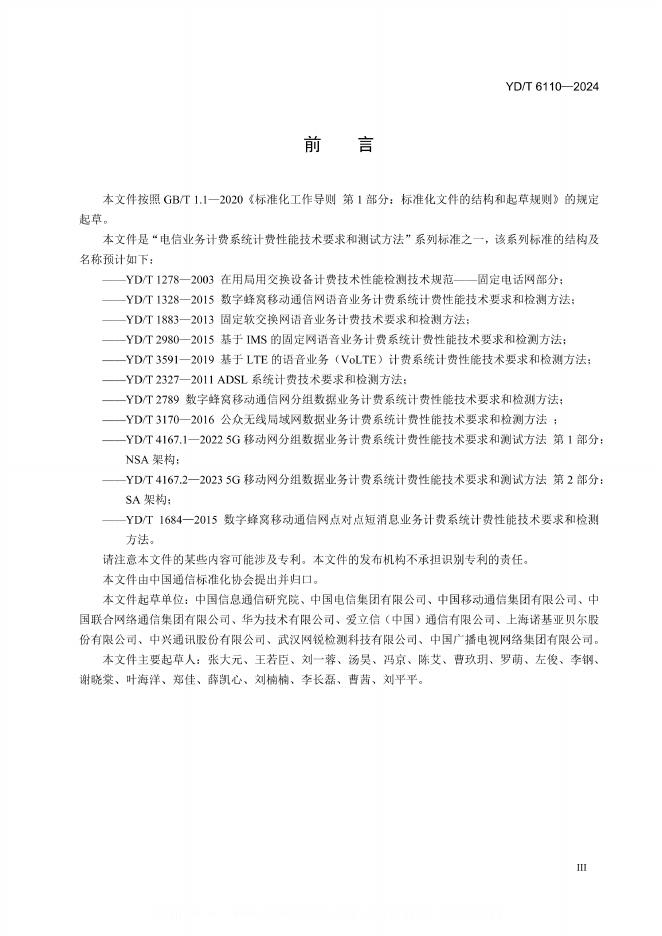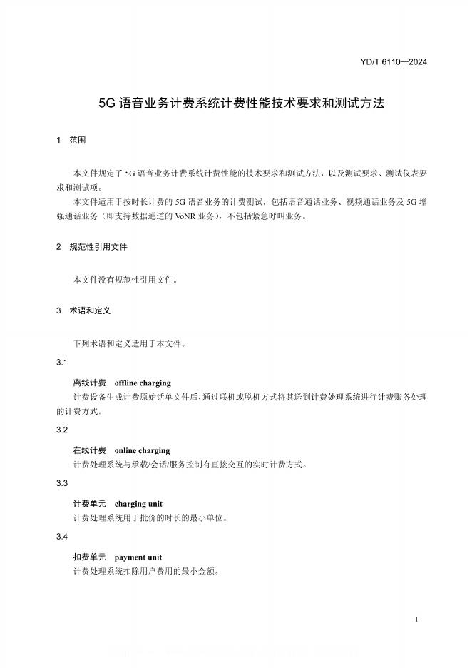 YD/T 6110-2024 5G语音业务计费系统计费性能技术要求和测试方法