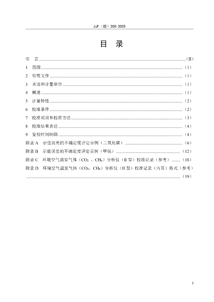 JJF(皖)200-2025 环境空气温室气体(CO2、CH4)分析仪(II型)校准规范